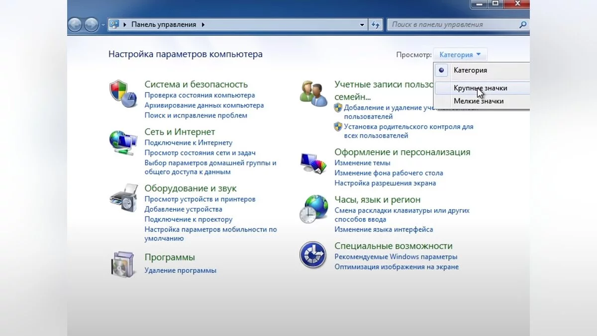 - Перейдите в «Оформление и персонализация» или в разделе «Просмотр» переключитесь с «Категория» на «Крупные значки»;
