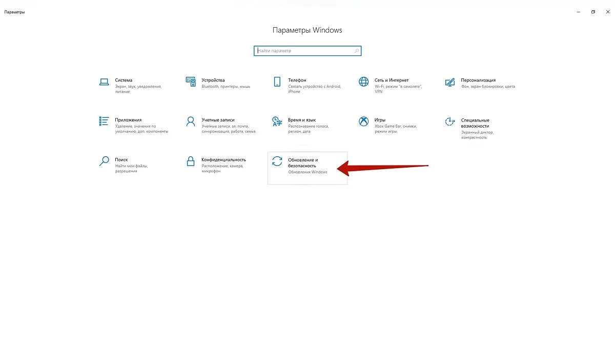 Требуется убедиться в установке всех последних обновлений для Windows 10. Для этого нажимаем кнопку «Пуск» и в самом низу выбираем раздел «Обновление и безопасность» или вводим слово «Обновление» в строке поиска и выбираем первый пункт в появившемся списке. В открывшемся меню устанавливаем все обновления и перезагружаем компьютер.