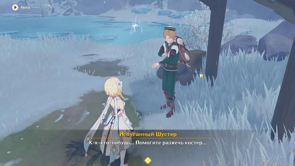 Это задание начинается не в Мондштадте, а недалеко от деревни Спрингвейл. Здесь вы встретите Брук. С этим поваром вы могли встречаться при выполнении квеста «Кулинарный поединок». Она попросит отправиться к Драконьему хребту и найти Испуганного Шустера, который отправился сюда в поисках цельномороженного мяса. Добывать ничего не нужно, Шустер отдаст добытые им куски мяса, а вам останется всего лишь доставить их повару в Спрингвейл.