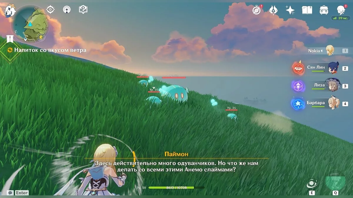 Когда сделаете это, Брук даст ещё одно поручение. Нужно исследовать открытый мир и найти несколько семян одуванчика, а также слизь слайма. Одуванчики растут практически везде, а слаймов можно найти при исследовании Артерий земли, у водоёмов и просто путешествуя по миру Genshin Impact. Большое количество слаймов можно отыскать у точки быстрого перемещения на западе от винокурни «Рассвет», на берегу озера.