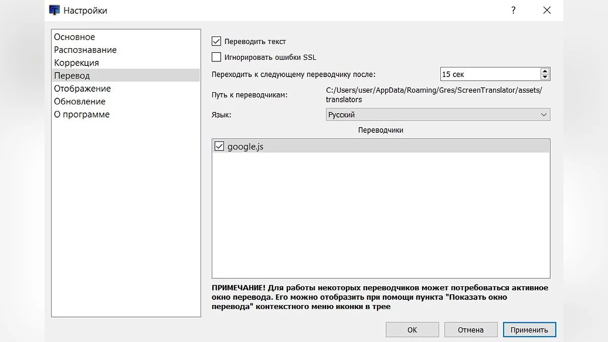 Если же вы совсем не хотите ждать, уже сейчас можно воспользоваться OCR-переводчиком. Благодаря этой программе текст в диалогах, дневниках и подсказках будет возможно распознать и перевести прямо с экрана. Чтобы всё работало, необходимо скачать ScreenTranslator с GitHub и отключить автоматическое воспроизведение диалогов.