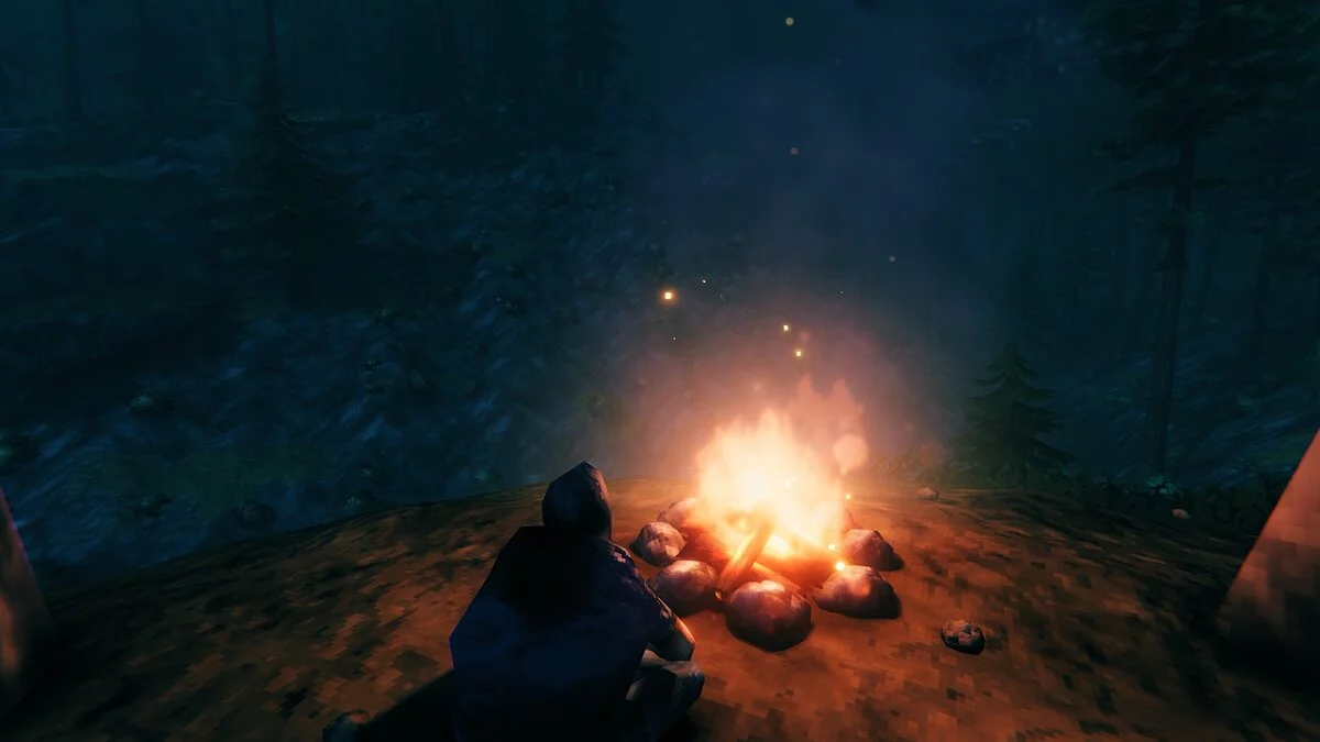 Чтобы спать в Valheim, вам понадобится костёр, факел не подойдёт. Для его строительства вам нужно пять камней, две древесины и молоток, затем вы сможете подкидывать в него деревянные дрова, чтобы поддерживать огонь. При 1/10 загруженности топливом костра хватит на 1 час 23 минуты. При максимальной загруженности костёр должен гореть 13 часов 53 минуты.
