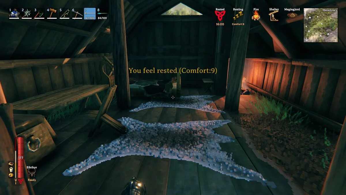 Если вы соответствуете всем требованиям, то все, что вам нужно сделать, это взаимодействовать с кроватью, и вы проснетесь утром полностью отдохнувшим. Теперь вы можете спать уютно и тепло, как и положено каждому викингу. Остаточный бафф длится ограниченное время, которое зависит от вашего уровня комфорта.