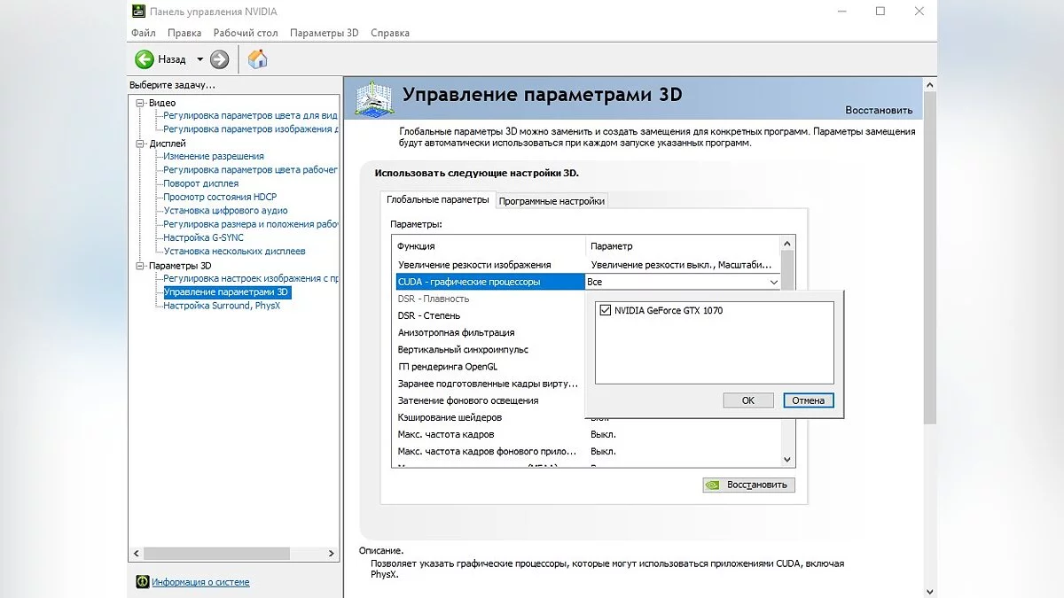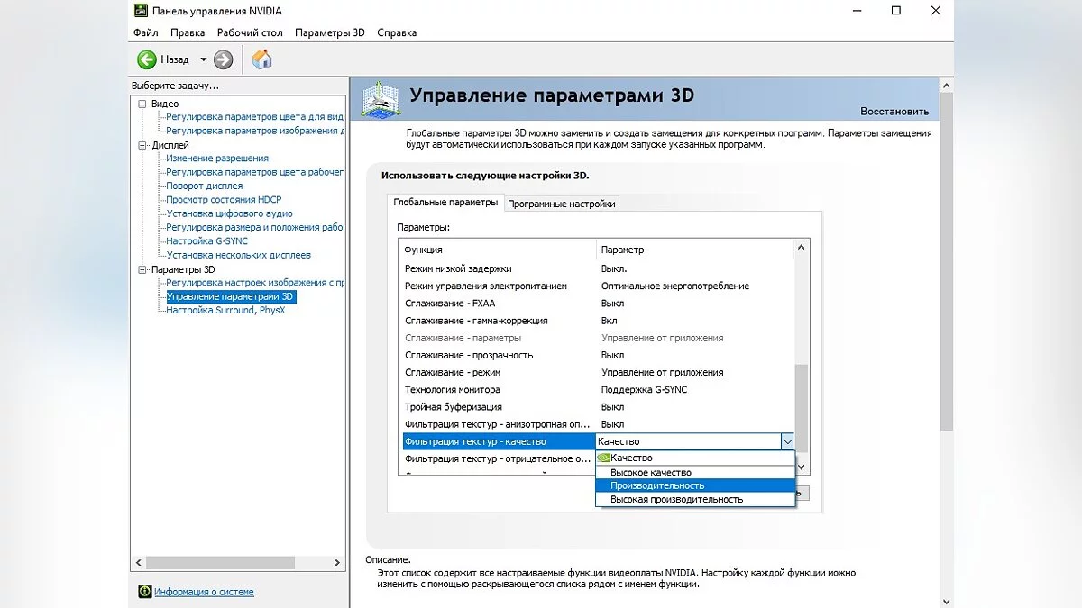 - Режим управления электропитанием — Предпочтителен режим максимальной производительности;