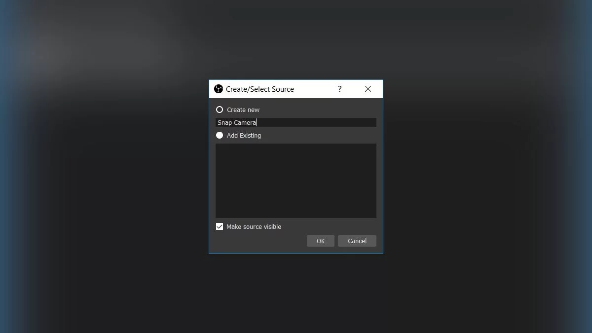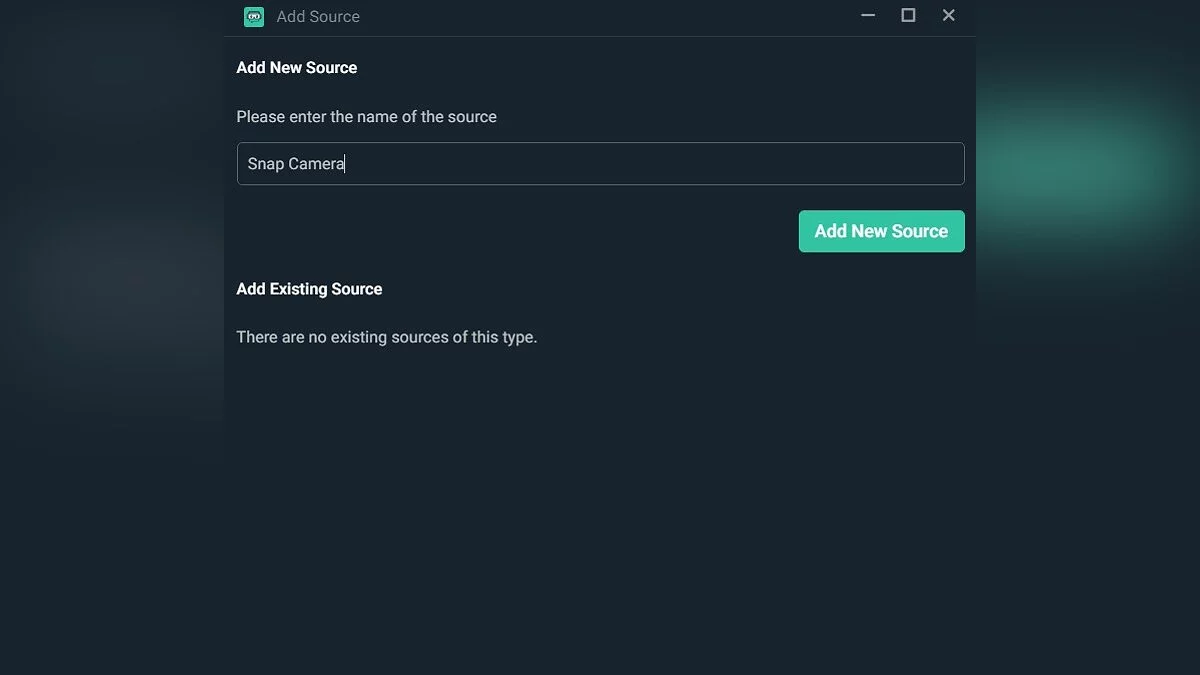 - Добавляем Snap Camera в качестве источника видеозахвата. Для этого нажимаем в левом нижнем углу окна кнопку «Add source».