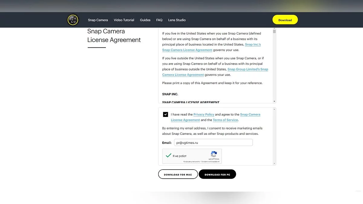 - Скачиваем Snap Camera с официального сайта разработчика.