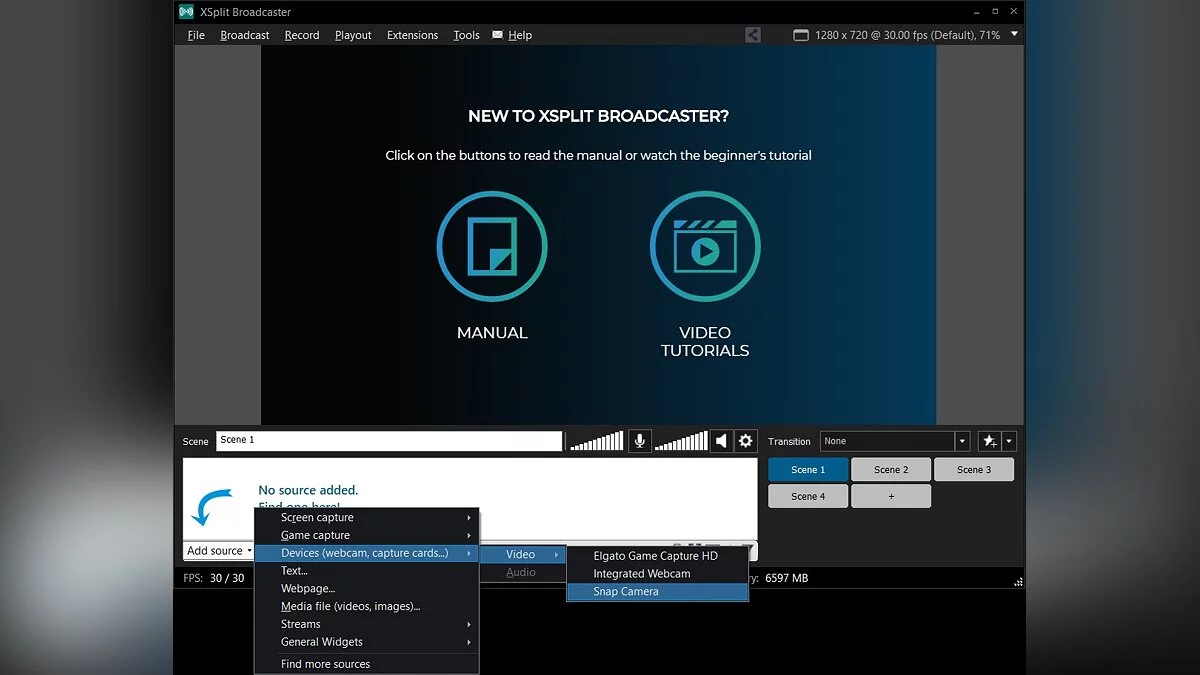 В списке ниже указаны все необходимые действия для включения Snap Camera в XSplit Broadcaster: