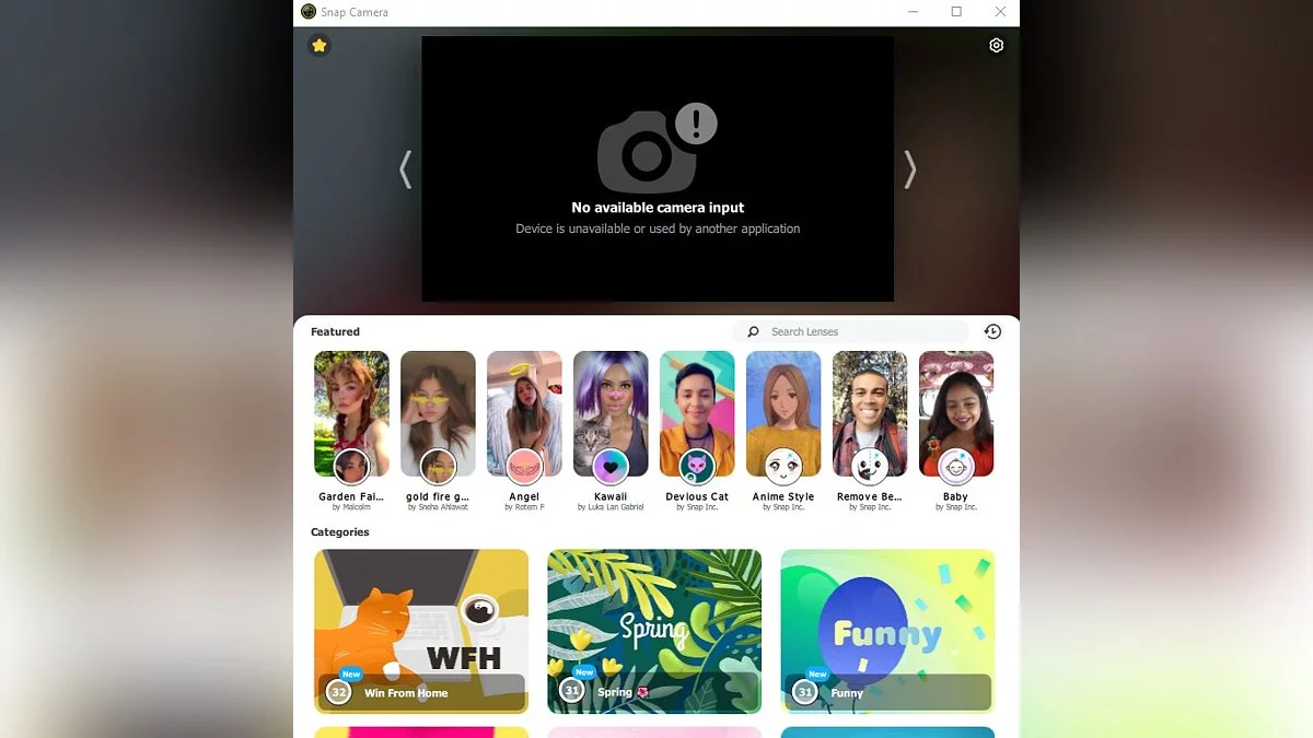 - Нажимаем на раздел Camera и в открывшемся окне выбираем Snap Camera.