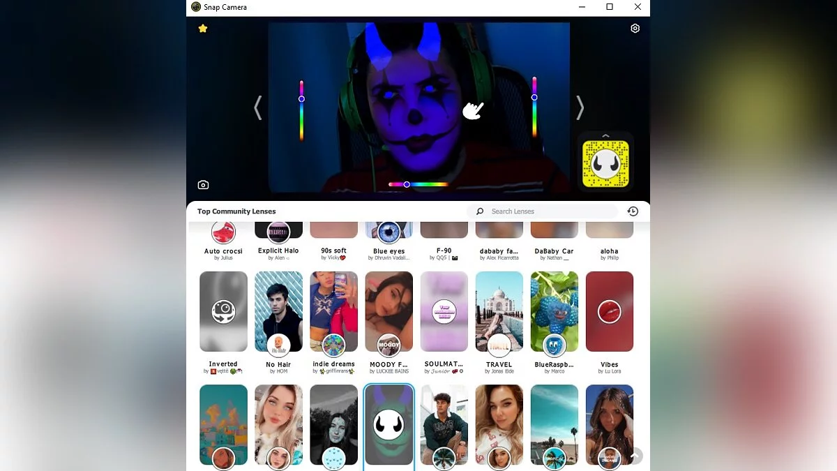 - Переходим в Snap Camera и выбираем понравившуюся маску.