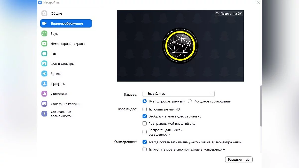 - В пункте «Камера» выбираем Snap Camera и закрываем настройки.