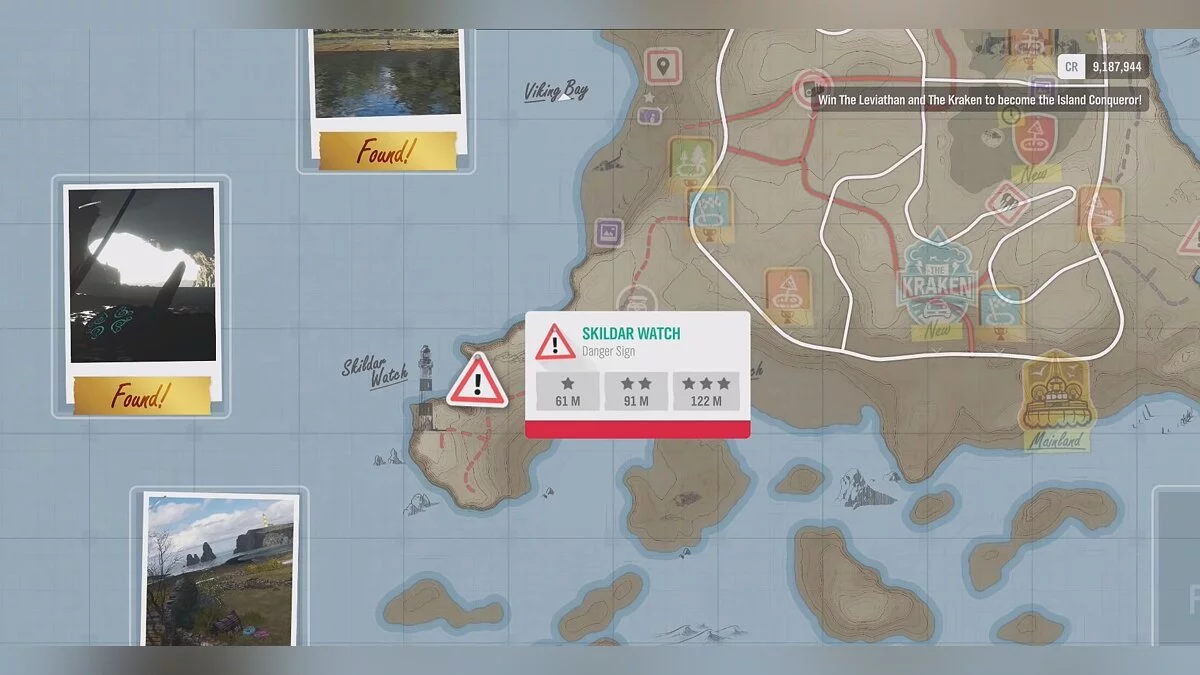 - Решение — используем автомобиль Ford Mustang GT Coupe 1965 года и отправляемся к испытанию первопроходца «Залив викингов» (Viking Bay), которое находится севернее локации «Фестивальная площадка». Для успешного выполнения задачи необходимо получить хотя бы одну звезду.