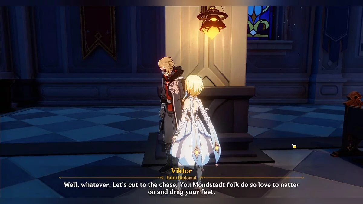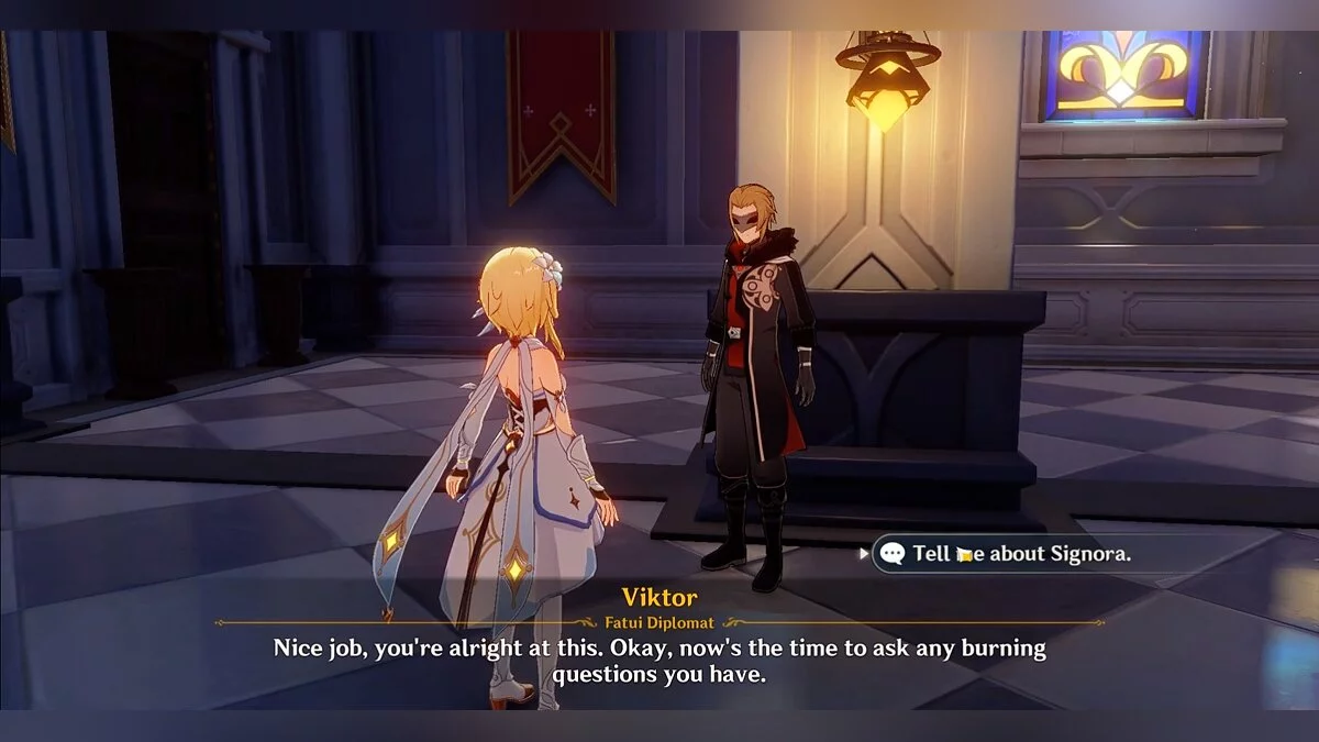 Отправляемся в собор Барбатоса и отдаём все диковинки Виктору. За это он расскажет путешественнику о Синьоре. За успешное выполнение просьбы дипломата игрок также получит следующие награды: