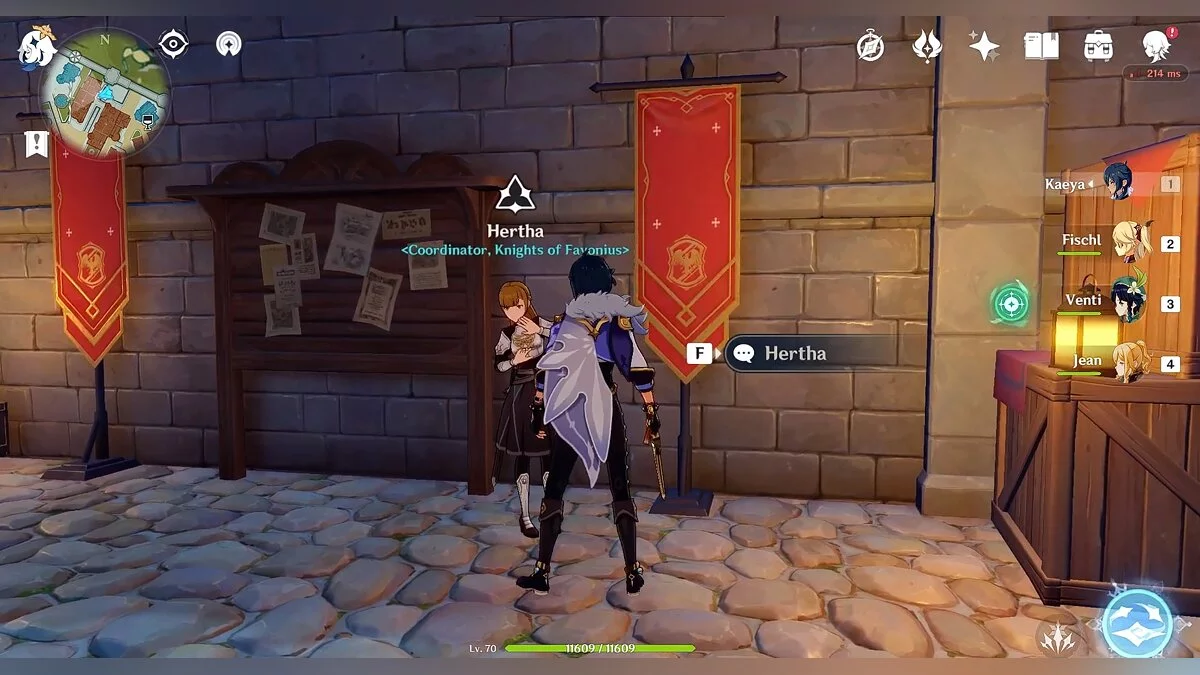 Отправляемся в Мондштадт и разговариваем с Гертой. Девушка направит героя к дипломату Виктору, который находится в соборе Барбатоса. Он попросит принести трофей с вождя Хиличурлов. Выбираем точку перемещения «Храм Волка севера» и отправляемся к фиолетовому маркеру.