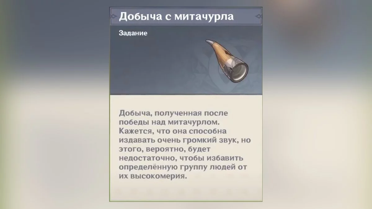 Расправляемся со всеми врагами и побеждаем самого сильного противника. По окончании битвы игрок получит предмет «Добыча с митачурла», который необходимо отнести Виктору в собор. Расспрашиваем дипломата обо всём и получаем достижение «Говорю как есть». Теперь доступ к заданию «Равноценный обмен» будет открыт. В награду за успешное выполнение задания игрок получит 2000 мора и несколько дополнительных предметов в зависимости от текущего уровня ранга приключений: