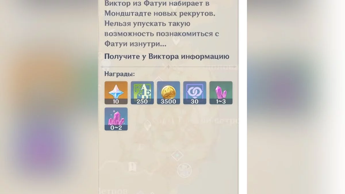 Прежде, чем приступить к выполнению задания, необходимо получить к нему доступ. Для этого потребуется успешно завершить ежедневную задачу «Зимняя история». Напомним, что эти задания появляются рандомно у всех игроков, поэтому придётся дождаться подходящего дня для его активации. Это может произойти абсолютно на любом ранге приключений, поэтому никаких дополнительных условий для получения задания выполнять не придётся. В ежедневном задании «Зимняя история» игрокам предстоит изучить деятельность дипломата Фатуи, набирающего в столице единомышленников для присоединения к общему делу.