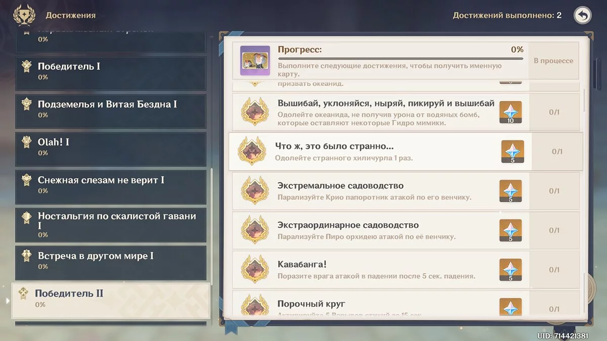 - Примогемы за нахождение 5, 10 и 20 странных хиличурлов.