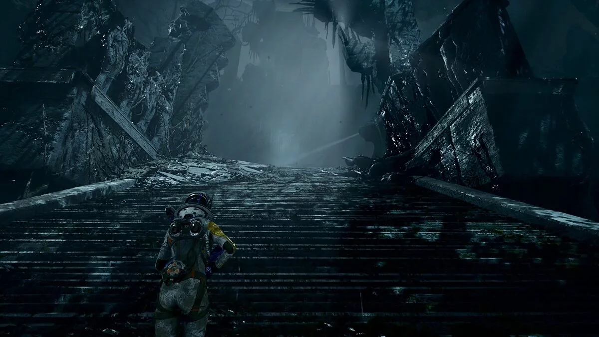 К сожалению, в игре не предусмотрен полноценный кооператив или PVP-режим. Вы не сможете напрямую взаимодействовать с другими игроками, чтобы вместе сразиться с боссом или помериться силами на арене. Но при этом, Returnal не является исключительно одиночной игрой. Разработчики реализовали асинхронный мультиплеер, который присутствовал в таких известных проектах, как Dark Souls или Death Stranding.