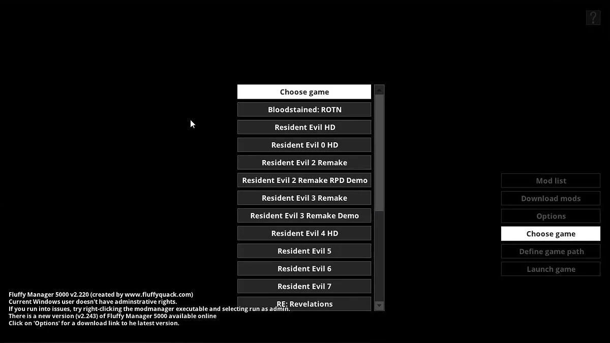 Отметим, что Fluffy Manager 5000 поддерживает не только Resident Evil Village, но и другие части серии, а также Devil May Cry 5, SoulCalibur 6. С его помощью можно скачивать модификации, устанавливать их и деактивировать при необходимости.