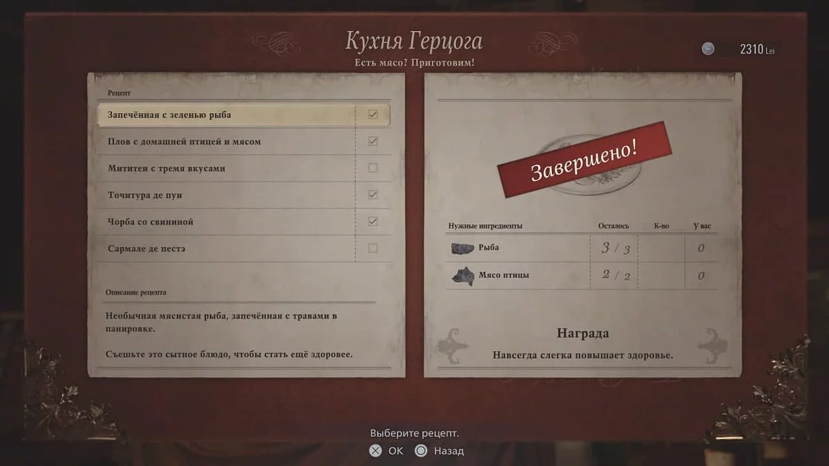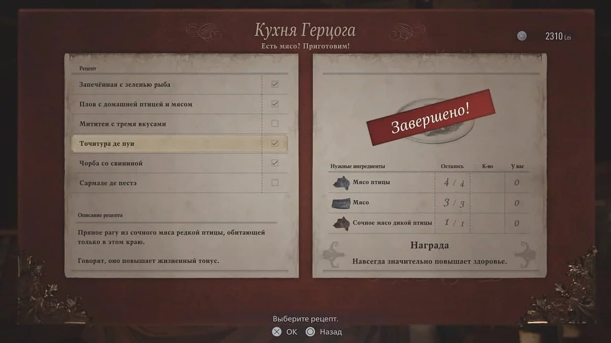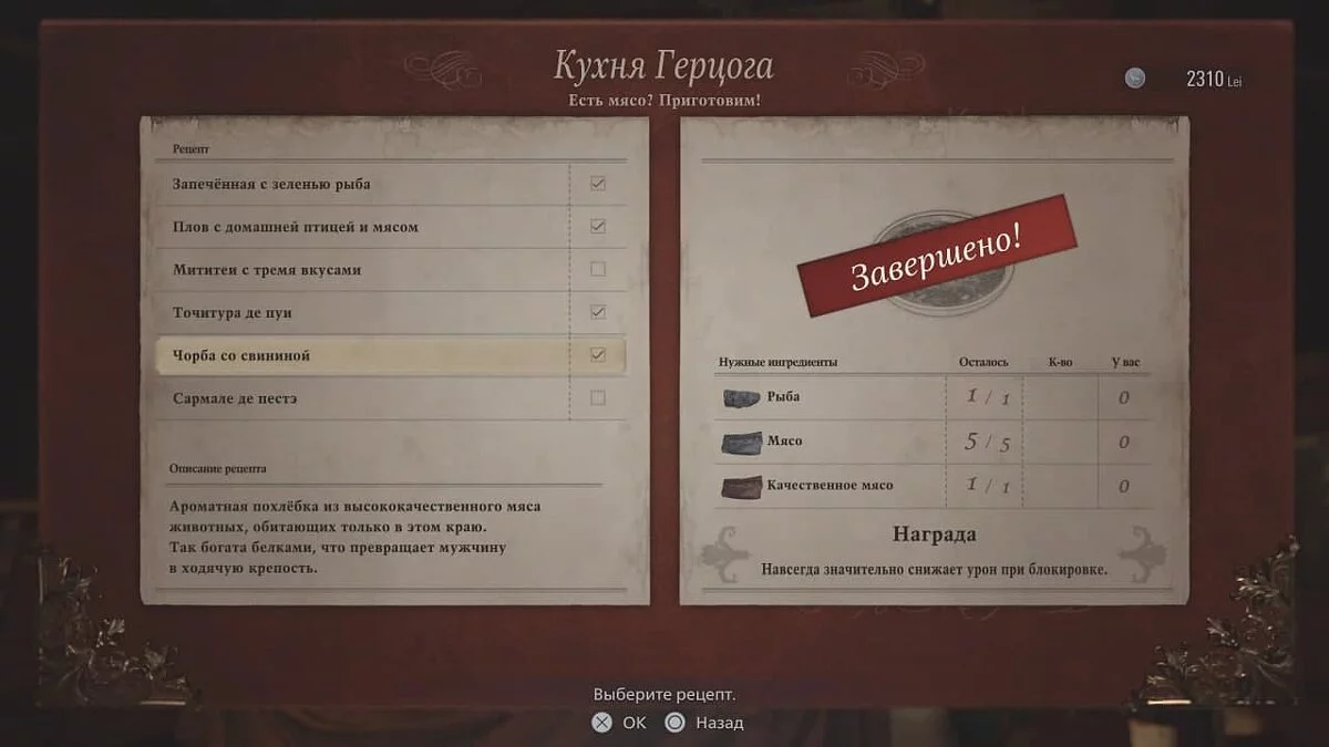 Как повысить здоровье, блокирование и скорость в Resident Evil Village. Гайд по характеристикам и готовке еды по рецептам Герцога