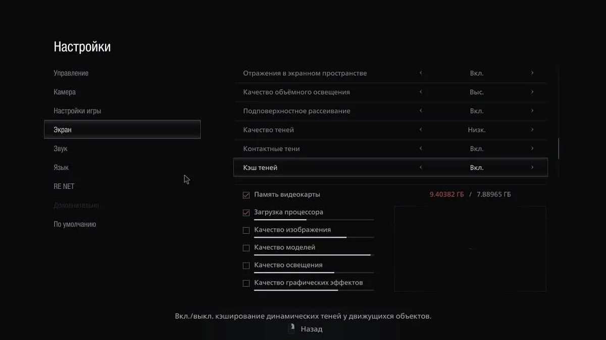 - Кэш теней: вкл.;