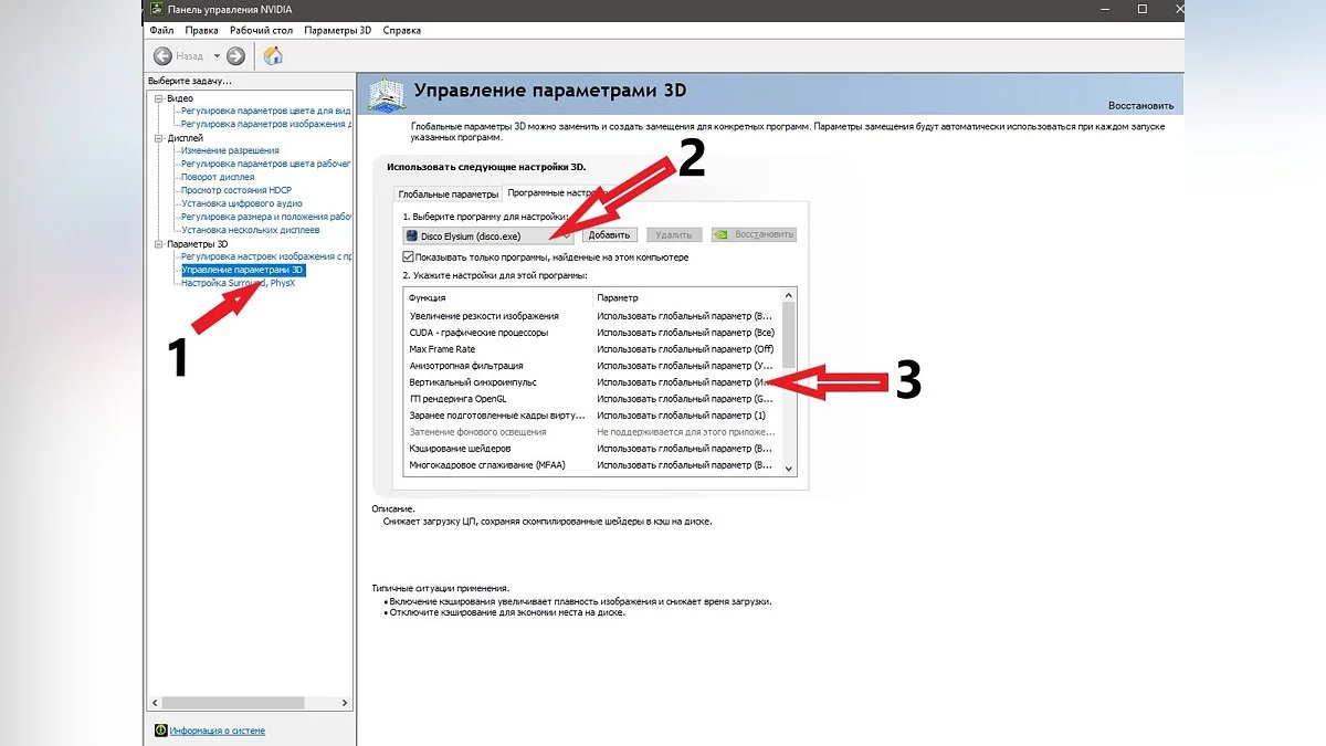 Для Nvidia: откройте Панель управления Nvidia, затем выберите «Управление параметрами 3D» и щелкните по вкладке «Программные настройки». Выберите процесс Skyrim.exe и внизу найдите вкладку «Вертикальный синхроимпульс». Выбирайте «Выкл» и нажмите «Принять» в нижнем правом углу.