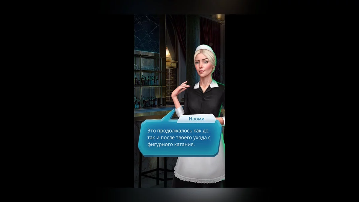 Героиня общается с барменшей.