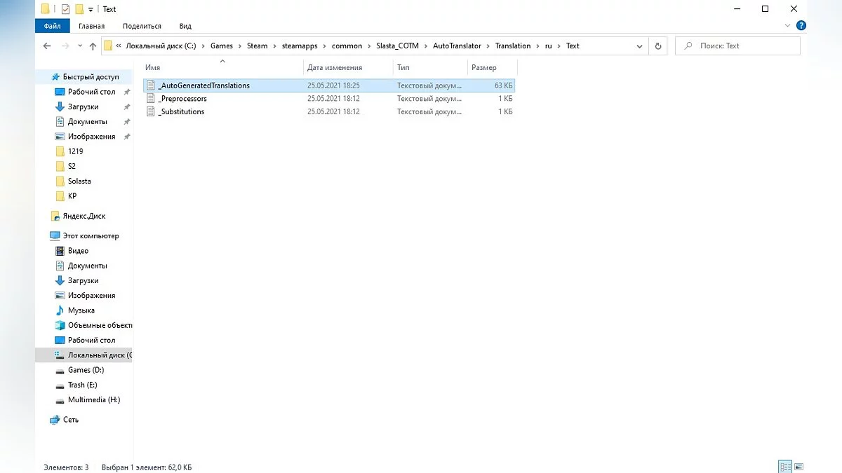 - Выходим из неё, как только она запустится, переходим в папку «AutoTranslator» и открываем файл «Config.ini».