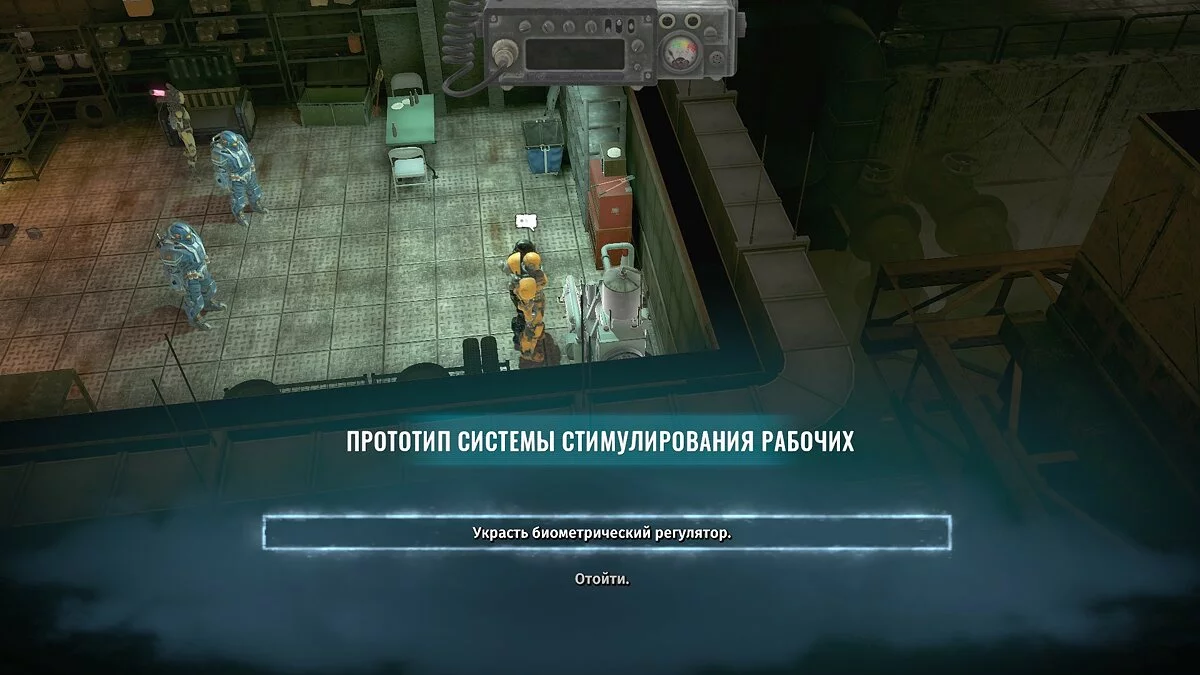 Квест можно взять на административном уровне в инженерном отделе у персонажа Б.Ф. Она попросит проникнуть в складское помещение фабрики и украсть биометрический регулятор из прототипа системы стимулирования рабочих. Найти механизм можно в центральной части локации.