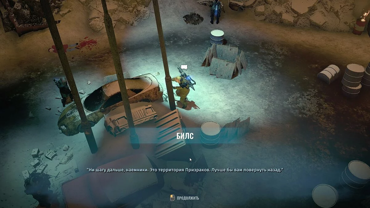 Общаться с бандитами бесполезно, так как они не пойдут на компромисс. Если сейчас вы убьёте Призраков, то их лидер по имени Блю откажется с вами разговаривать. Так вы потеряете одну из ключевых развилок в игре, в которой сможете сместить Маркхем с должности руководителя фабрики.