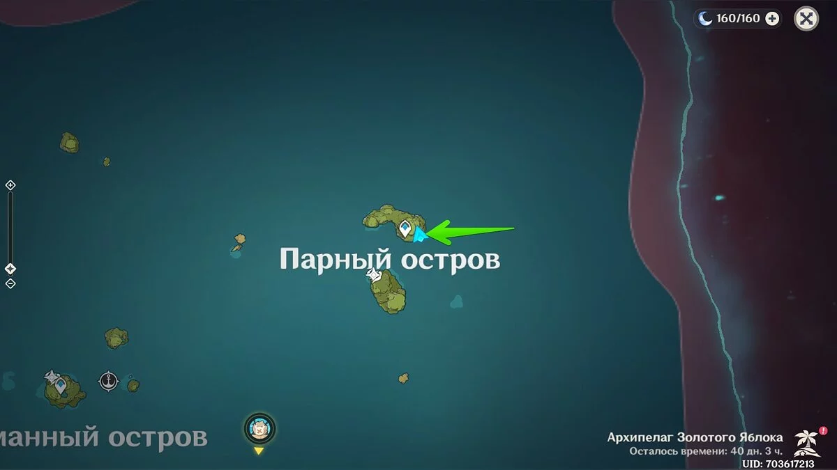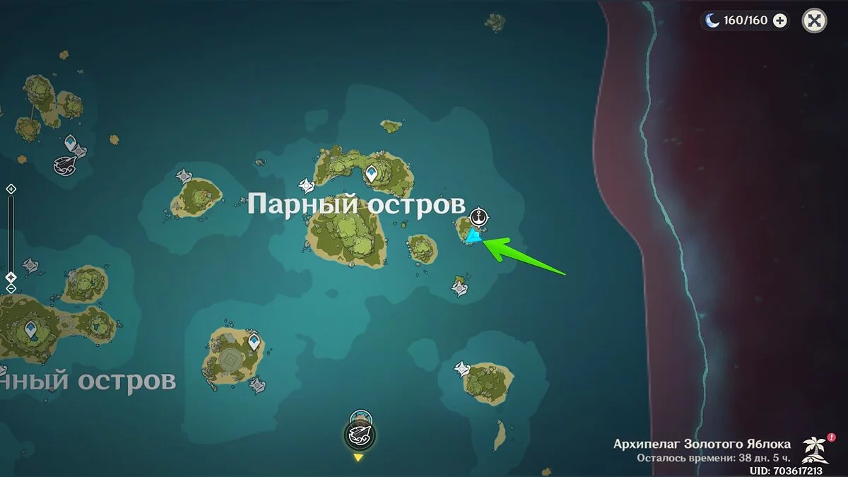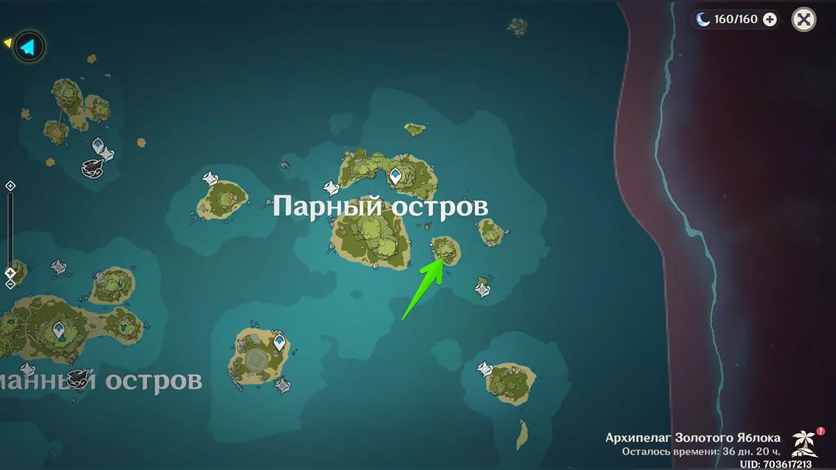 Осмотрите остров справа от Парного острова (нижнего). Заберитесь на возвышенность и найдите раковину.
