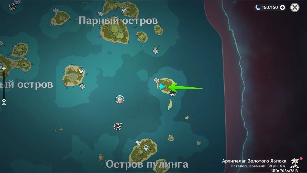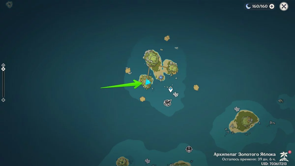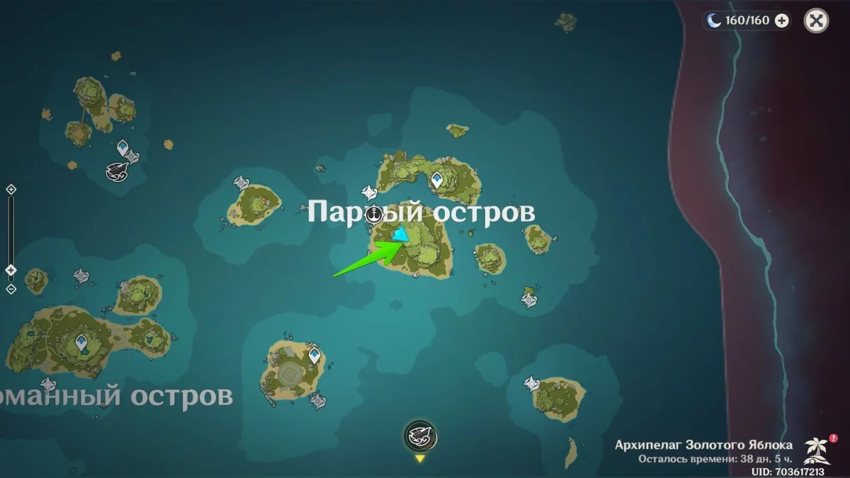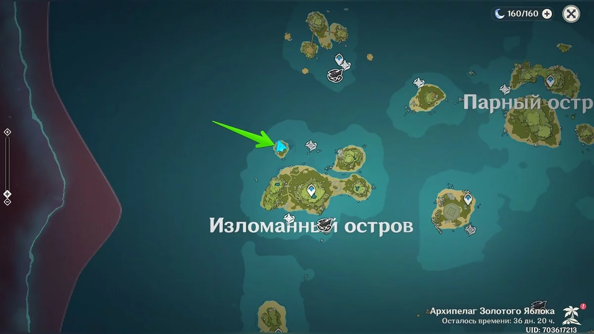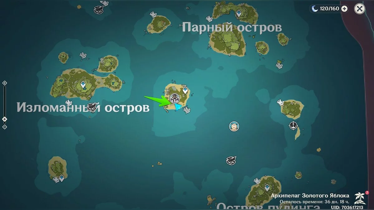 Доберитесь до острова в левом углу архипелага (выше Изломанного острова) и осмотрите центральную его часть.