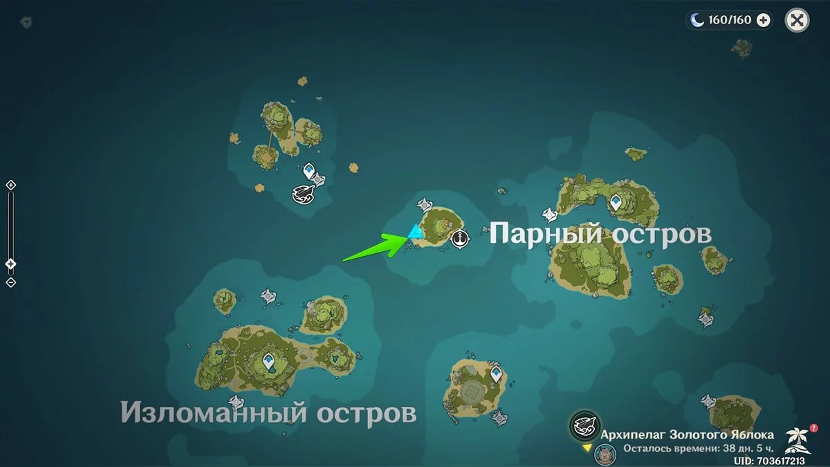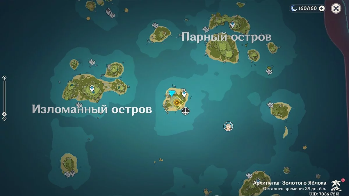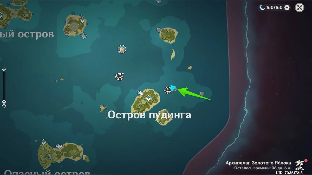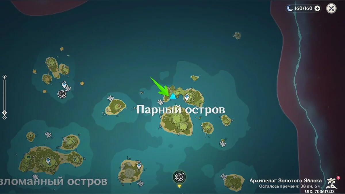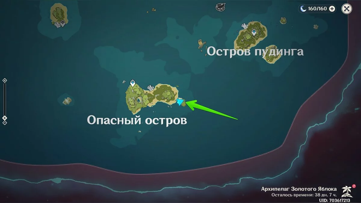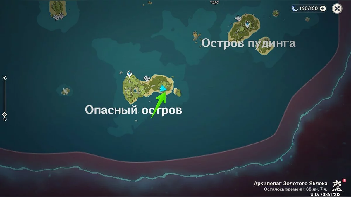 Доберитесь до острова в левом углу архипелага (выше Изломанного острова) и осмотрите центральную его часть.