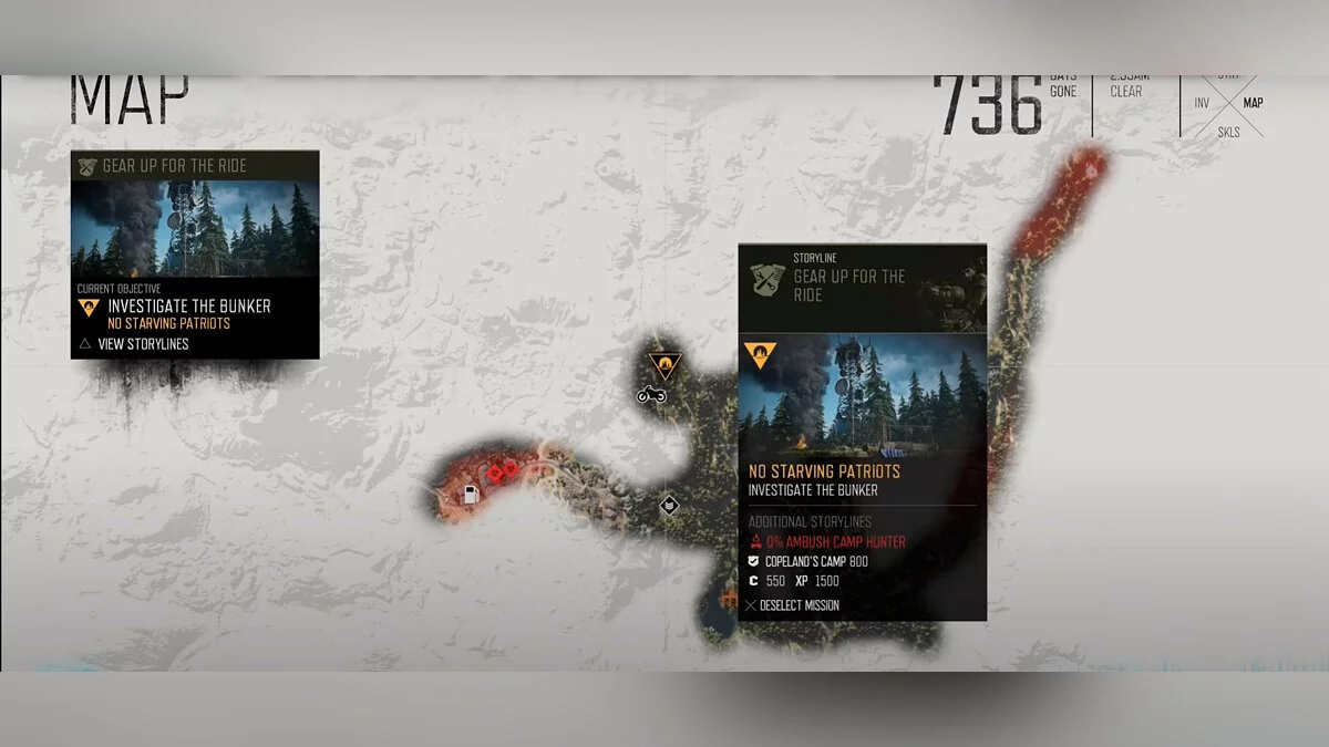 Когда лагерь опустеет, на карте появится примерная зона поиска бункера. Это главное, зачем стоит захватывать лагеря. Именно в бункере можно найти карту местности, а также новые рецепты для крафта. Там же находится кровать для восстановления сил.