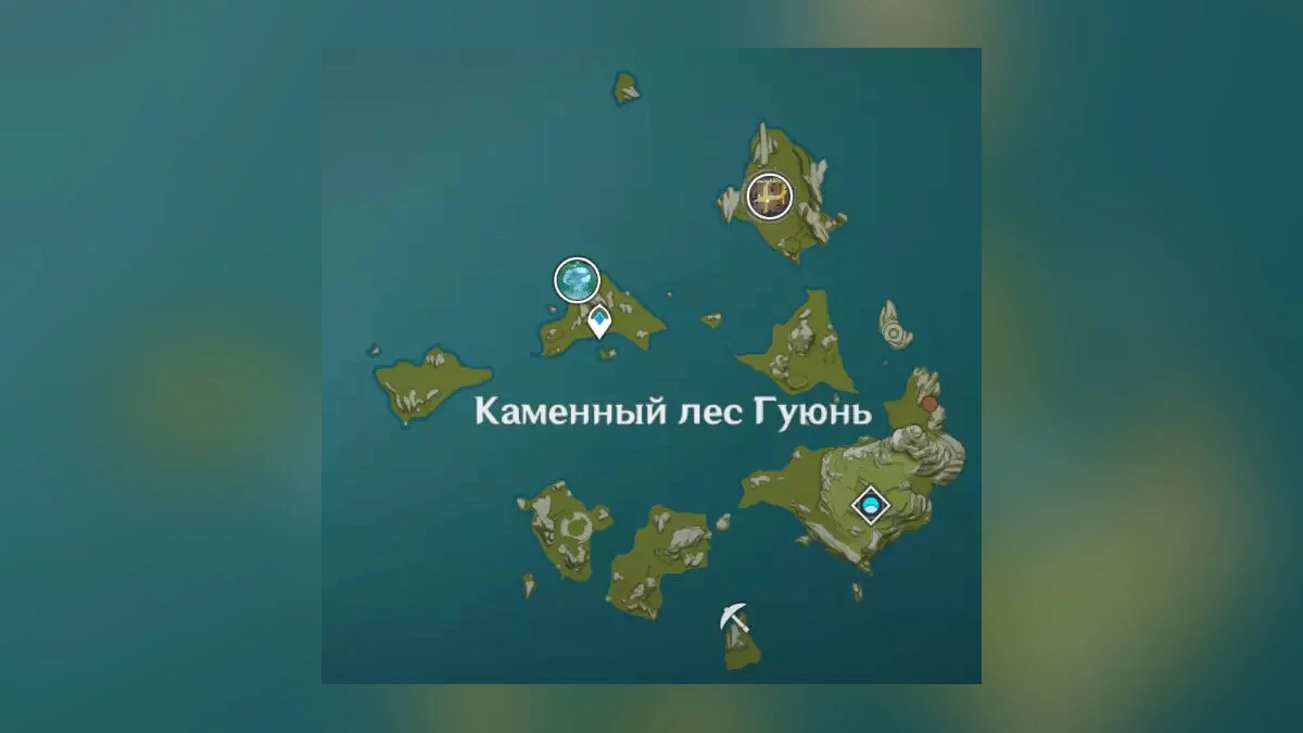 Еще несколько точек появления нефрита можно найти на одном из островов локации Каменный лес Гуюнь.
