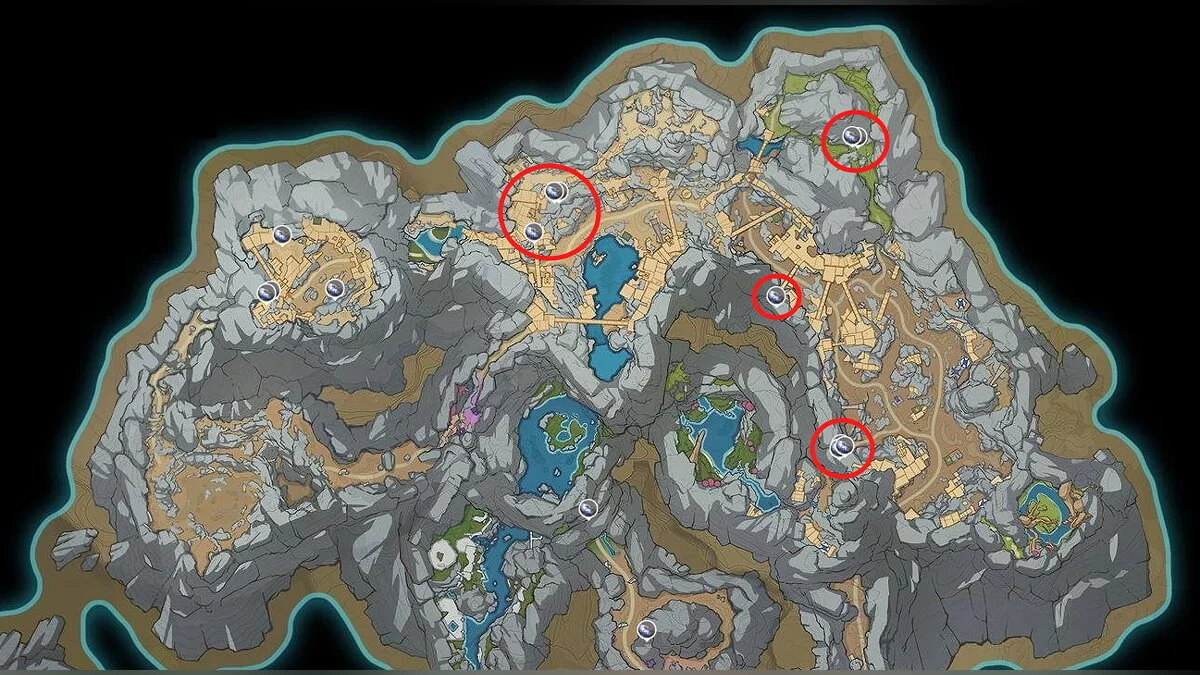 После выхода обновления 2.6 в Genshin Impact появилась новая локация под названием Разлом. Там вы сможете найти ещё 18 мест для добычи полуночного нефрита. Рекомендуем для начала открыть все доступные здесь телепорты.
