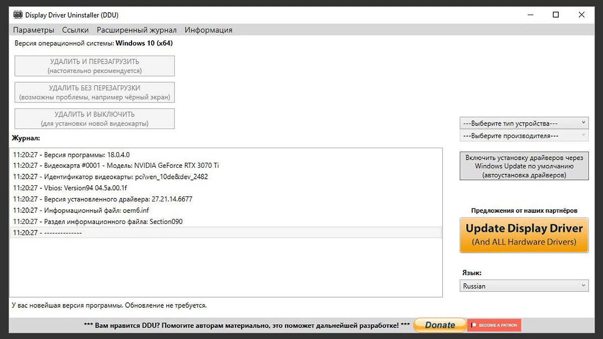 В любой ситуации желательно сделать полное удаление драйвера через утилиту Display Driver Uninstaller. Затем нужно перезагрузить компьютер и поставить новый драйвер.