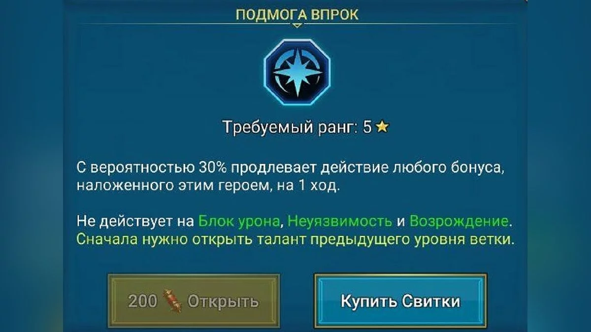 Скорая реакция — после снятия наложенного вашим героем негативного эффекта существует шанс в 30%, что ваш чемпион восстановит 10% шкалы хода.