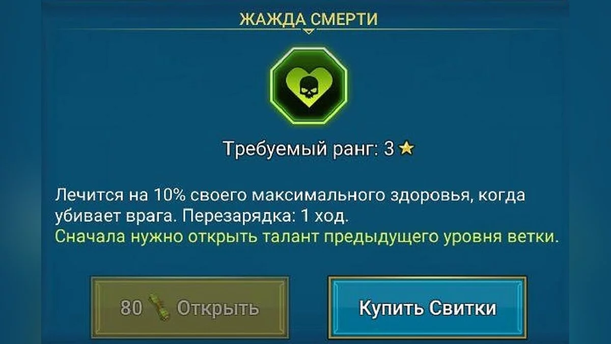 Здесь на выбор есть четыре таланта, за изучение одного из них вам потребуется заплатить 80 зеленых свитков.