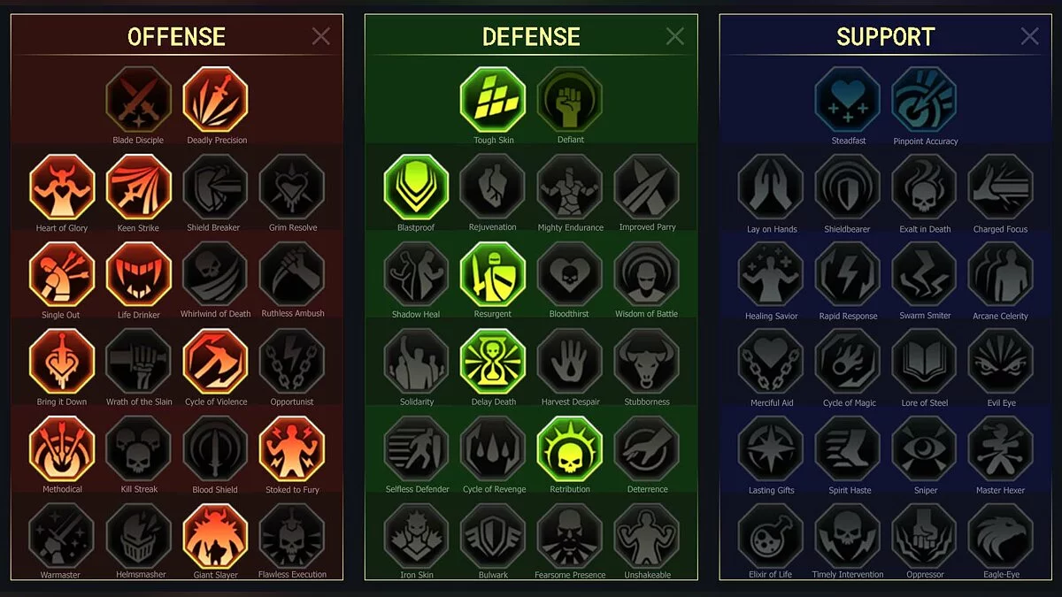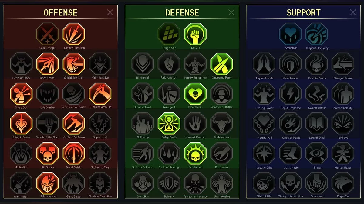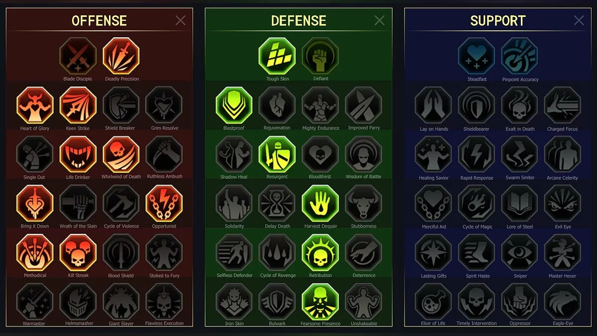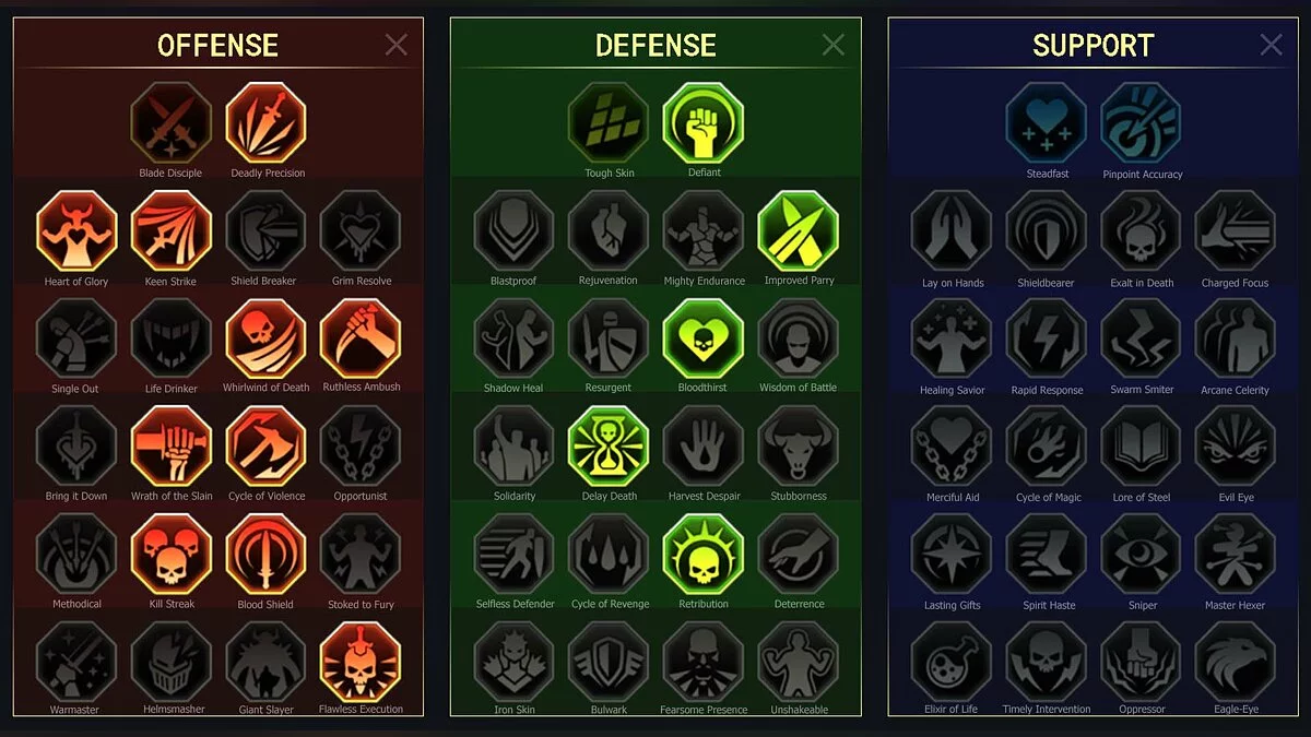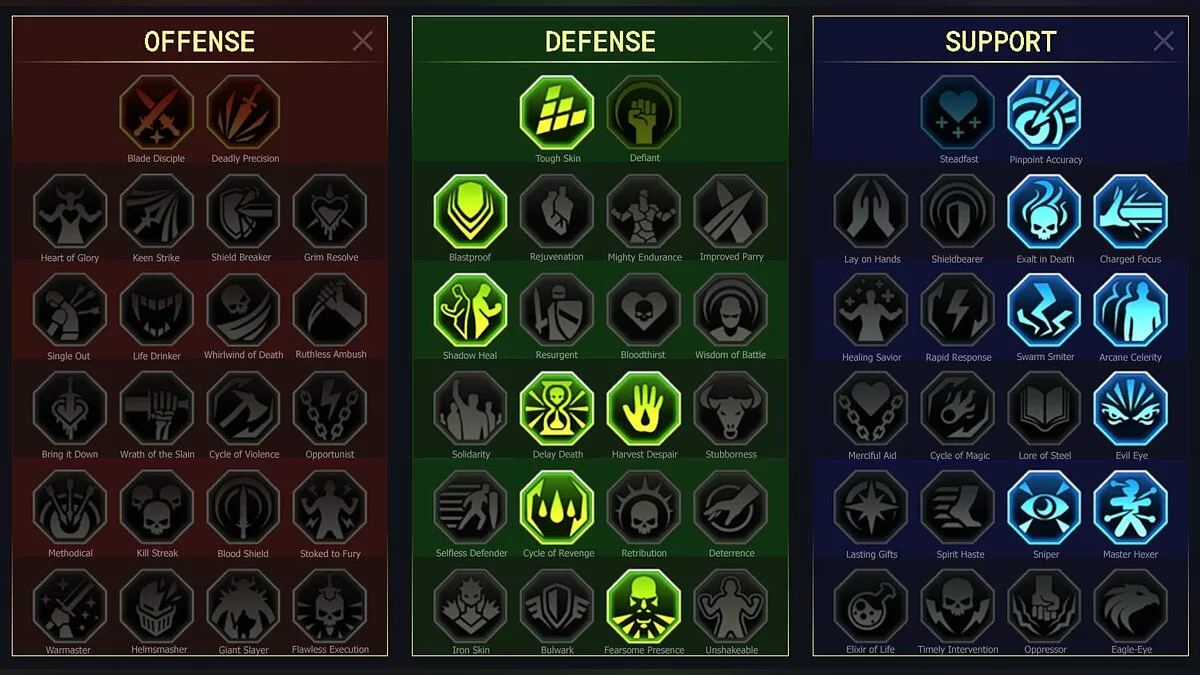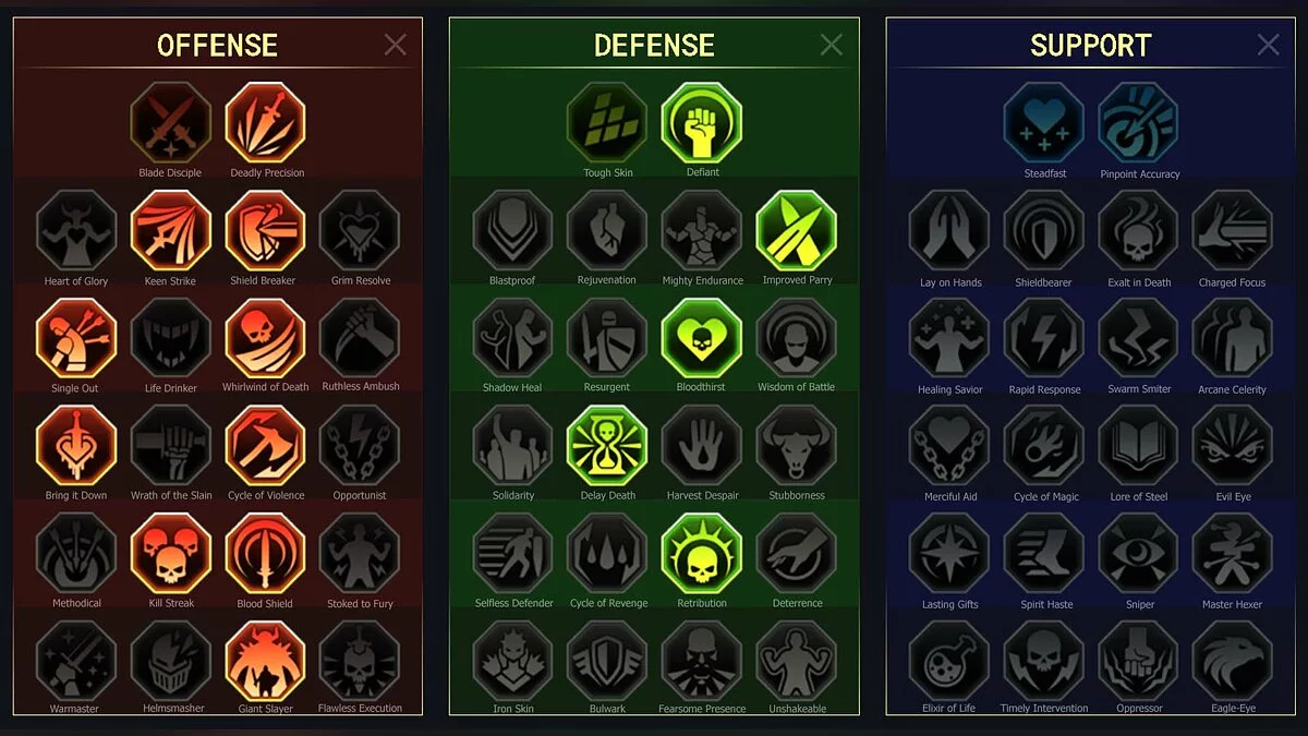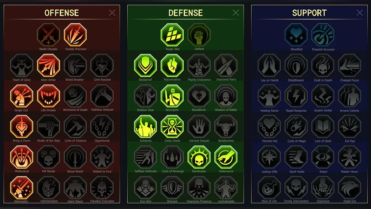 Таланты для билдов с упором в поддержку союзников и понижение характеристик у вражеских героев: