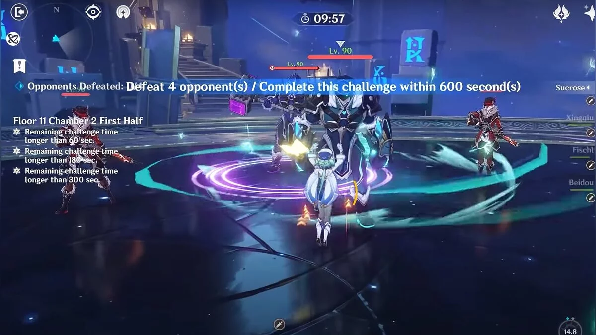 Ваши герои должны быть как минимум 45-го уровня. Для последнего боя вам потребуется лучник. Если у вас нет в команде Тартальи, воспользуйтесь Венти, Эмбер или Гань Юй.