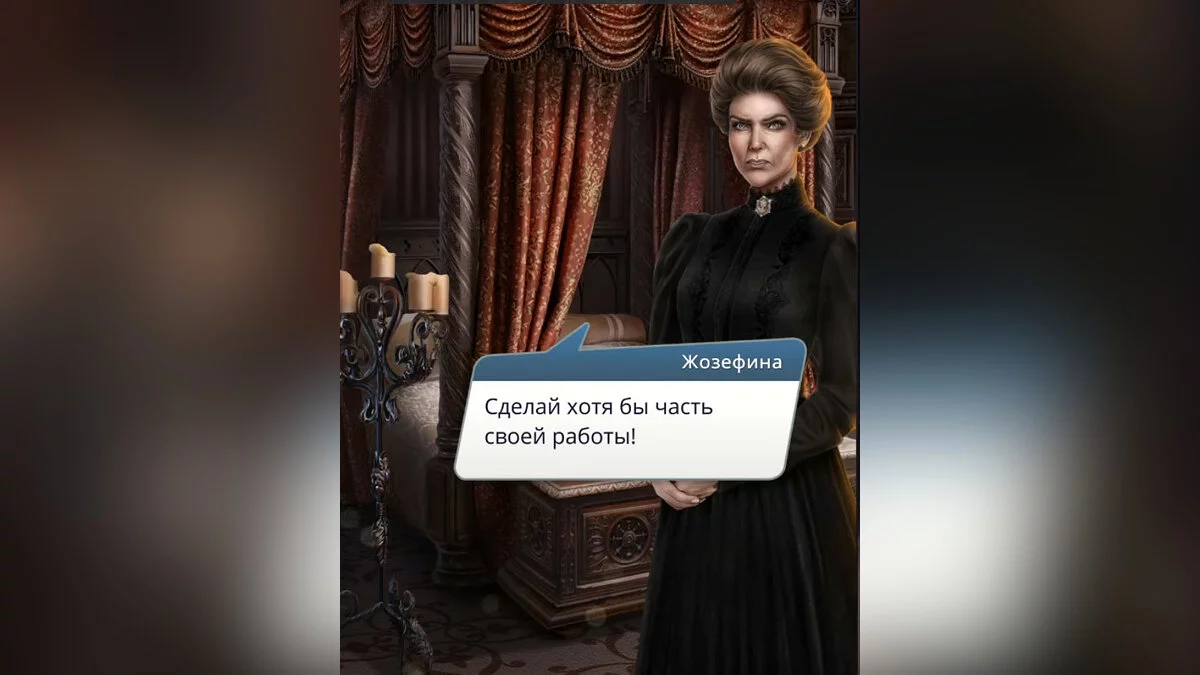 Разговор прервался после того, как Жозефина увидела в руках Селены книгу, которая вызвала у героини ряд вопросов. Отобрав произведение, женщина со злостью приказала служанке больше не вламываться без спроса в ее библиотеку. Здесь вам предстоит выбрать один из дальнейших вопросов (никак не влияет на сюжет):