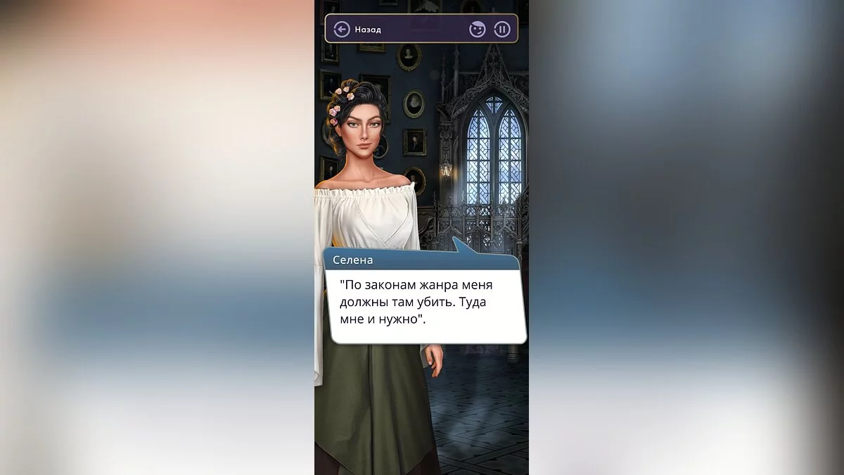 Если в предыдущем эпизоде вы выбрали вариант «Согласна», то последует выбор: «Селена вытянула...»