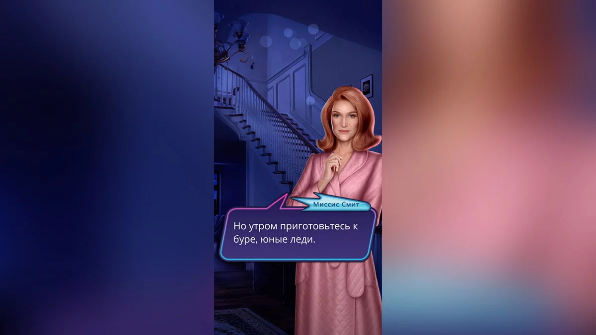 Мистер Смит заподозрил, что вы что-то выпили, но ругаться не стал. А его жена предупредила, что утром вас ждёт буря. В ответ ваша героиня обвинила родителей в слежке. Но это не так. Они не спят по своим причинам. Произошёл кратковременный сбой системы. И мистер Смит теперь ждёт подтверждения. Мужчина пообещал, что сообщит отцу Миранды, что девушка у него, если он позвонит. Миссис Смит потребовала ложиться, но ваша героиня заявила, что хочет ещё немного посидеть. Мама разрешила, если вы будете вести себя тихо.