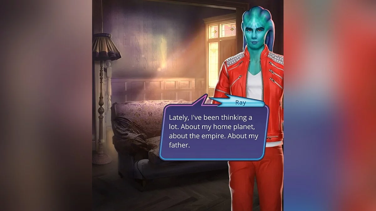 Для пришельцев прикосновение значит больше, чем для людей. Но Рэю нравится держать вашу героиню за ручку. При этом он не хочет делиться негативными эмоциями. На взгляд принца, лучше посвятить этот вечер вам.