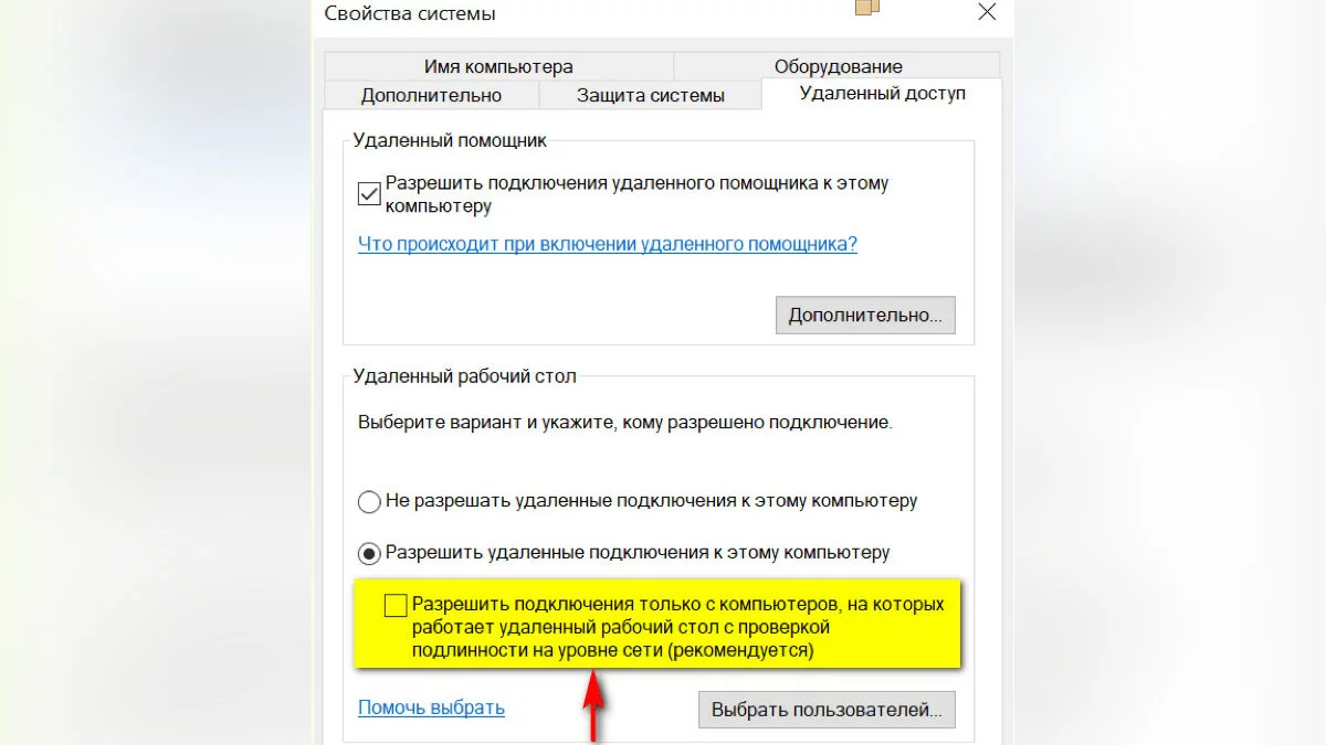 - Поставить галочку напротив пункта «Разрешить подключение удаленного помощника»;