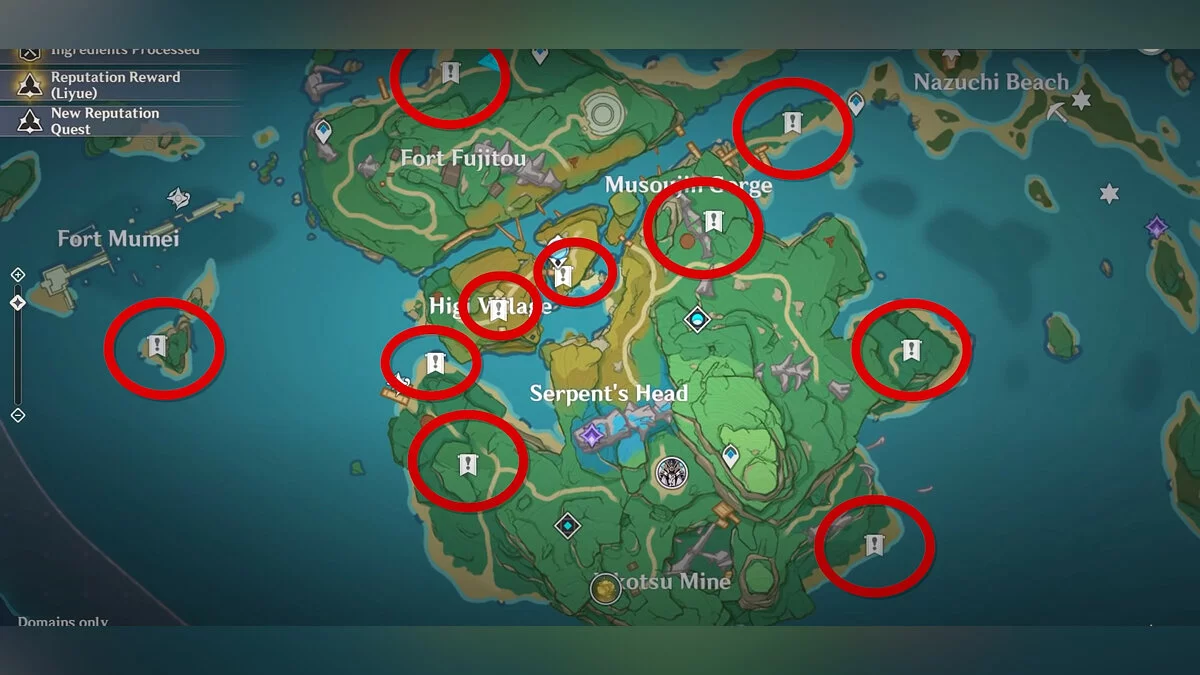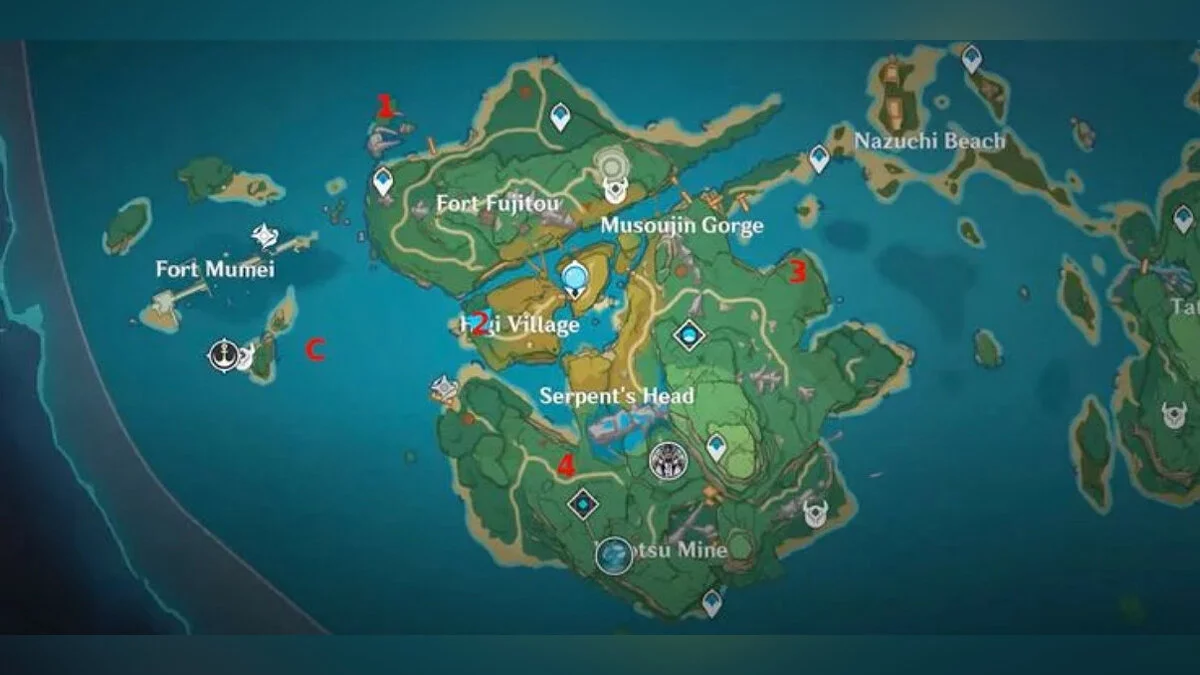 Изучая Инадзуму, вы можете наткнуться на один неприметный остров с большим количеством горшков. Никакого особого задания не появится. Разбейте абсолютно все горшки, после чего всплывет сообщение о вызове врагами подкрепления. Очень быстро вы обнаружите одинокого воина, который сразу нападет. После победы вы получите роскошный сундук.