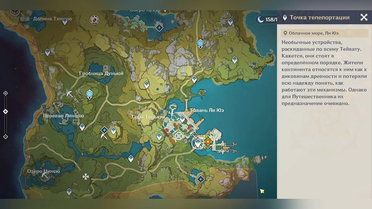 Активируем квест и отправляемся при помощи быстрого перемещения к точке телепортации «Облачное море, Ли Юэ».