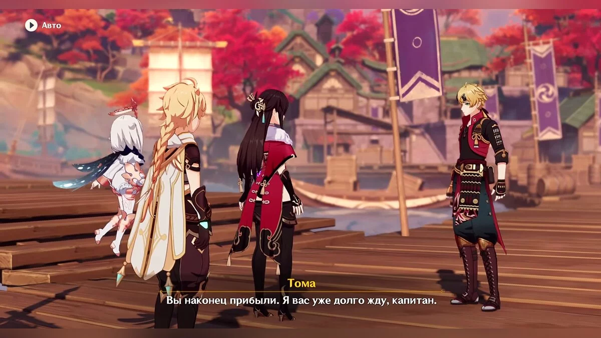 Рассказываем обо всём Курисо и наблюдаем за небольшим видеороликом. Общаемся с Томой, который предложит посетить другой остров Инадзумы.