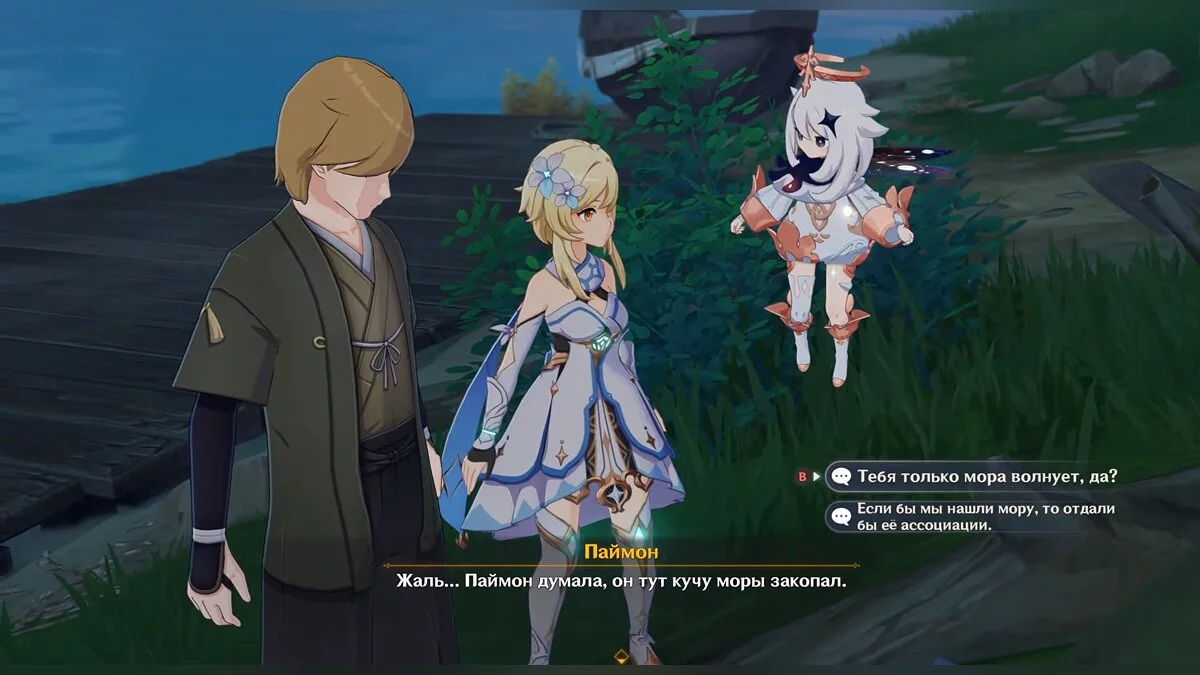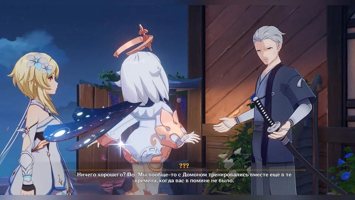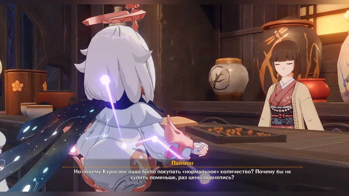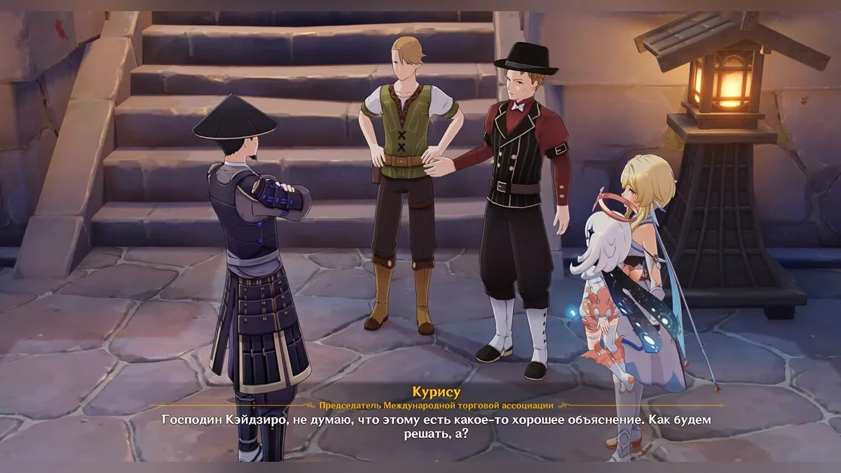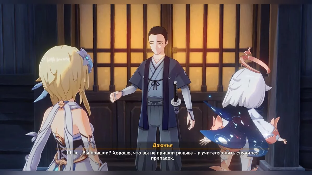 Герой вместе с Паймон захотят предотвратить кражу, но их остановит Ёимия. Оказывается, Хансиро отдал подделку, поэтому ничего страшного с мужчиной не произошло.