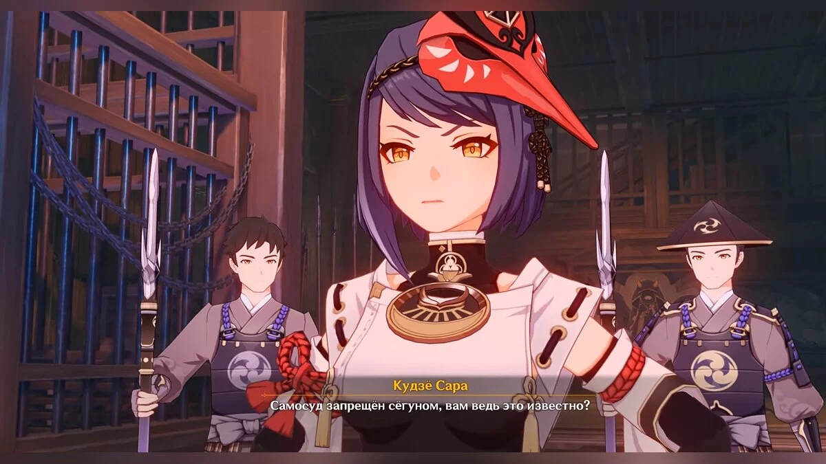 Путешественник также узнает, что мастера Масакацу, о котором ранее упоминала Аяке, держат взаперти в подземелье полицейского участка. Следуем к указанной на карте точке и зачищаем территорию от стражников.